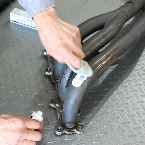 2.清浄な布に、ステンマジックを少量とり、磨き込む様にして熱焼けをこすり落としてください。