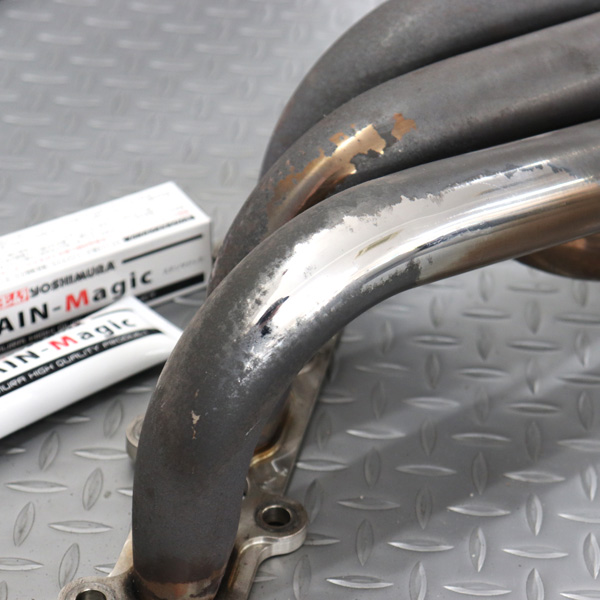 - ヨシムラ ステンマジックは、熱焼けしたステンレスマフラーを新品同様に磨き上げるクリーナーです。